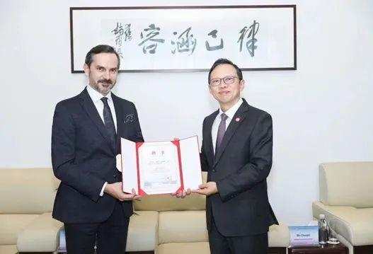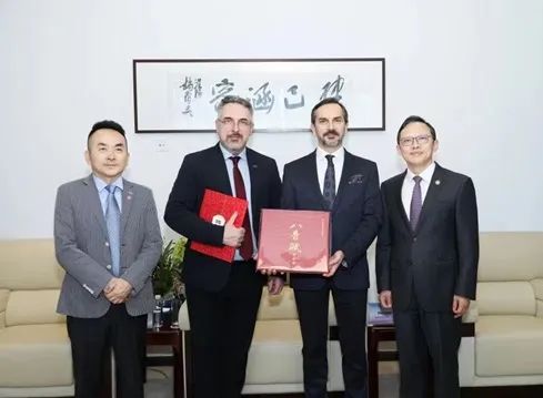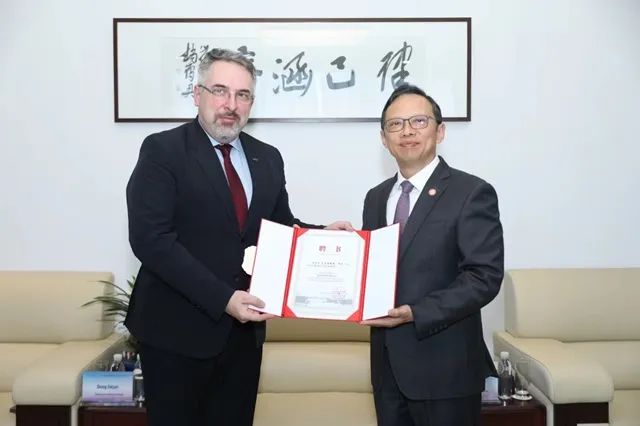 會談期間,克勞迪奧斯·巴倫、保羅·古斯納受聘擔(dān)任學(xué)院客座教授,王瑞院長為他們頒發(fā)了聘任證書。