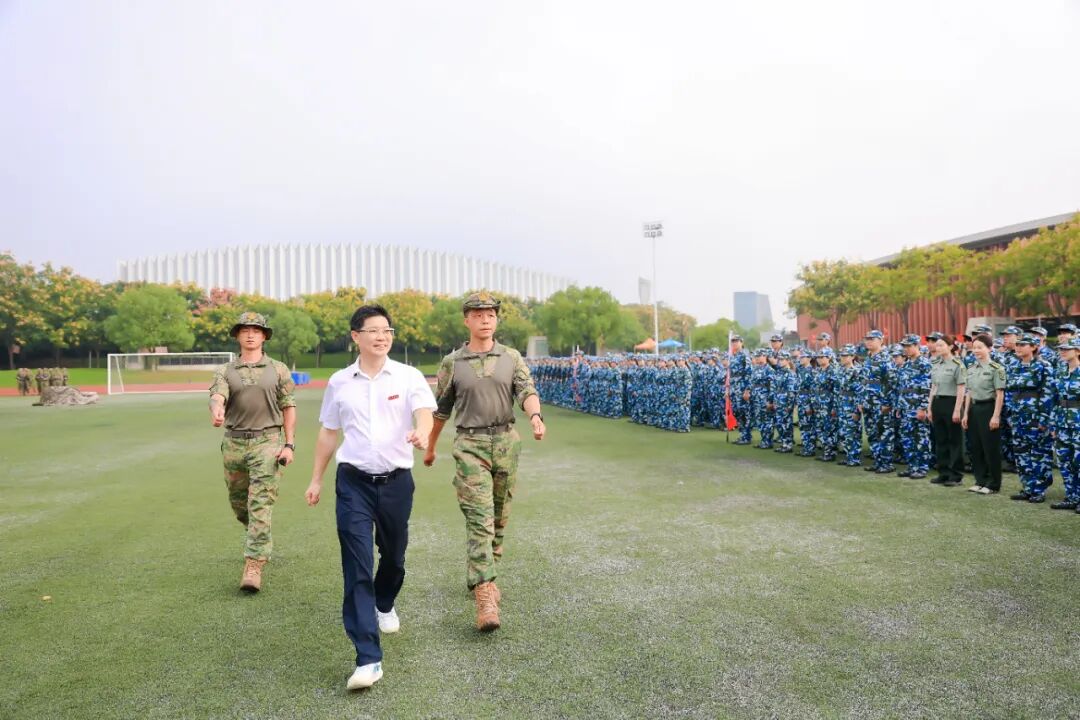 黨委書記干武東在軍訓(xùn)營營長張超圣的陪同下,逐一檢閱代表方陣。